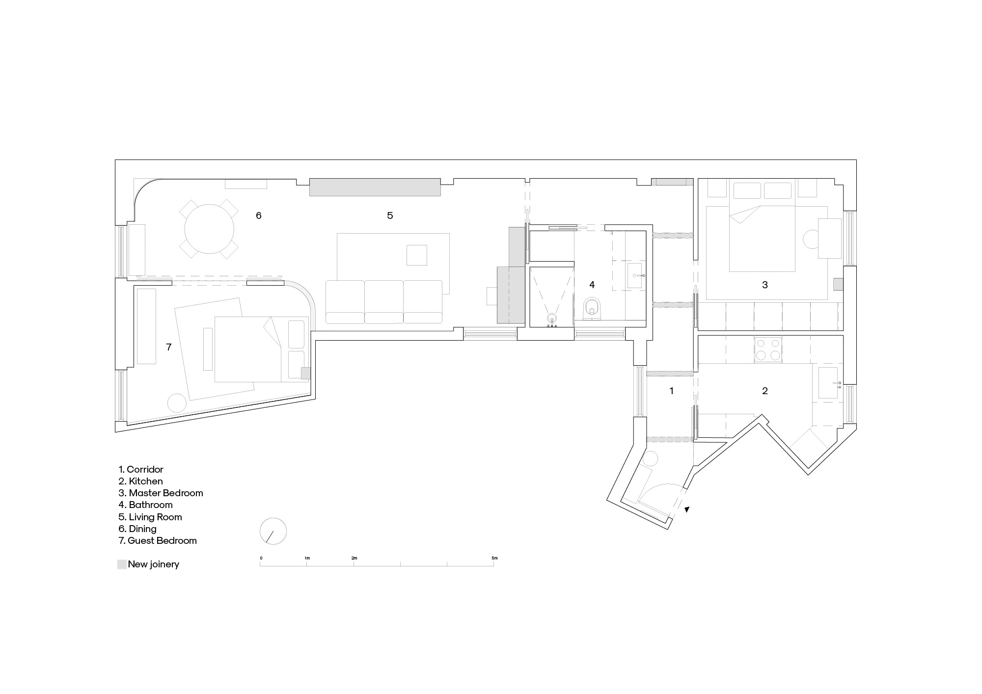 What needed to change was not the bones (walls) but the surface, the colours and materials that created visual noise.