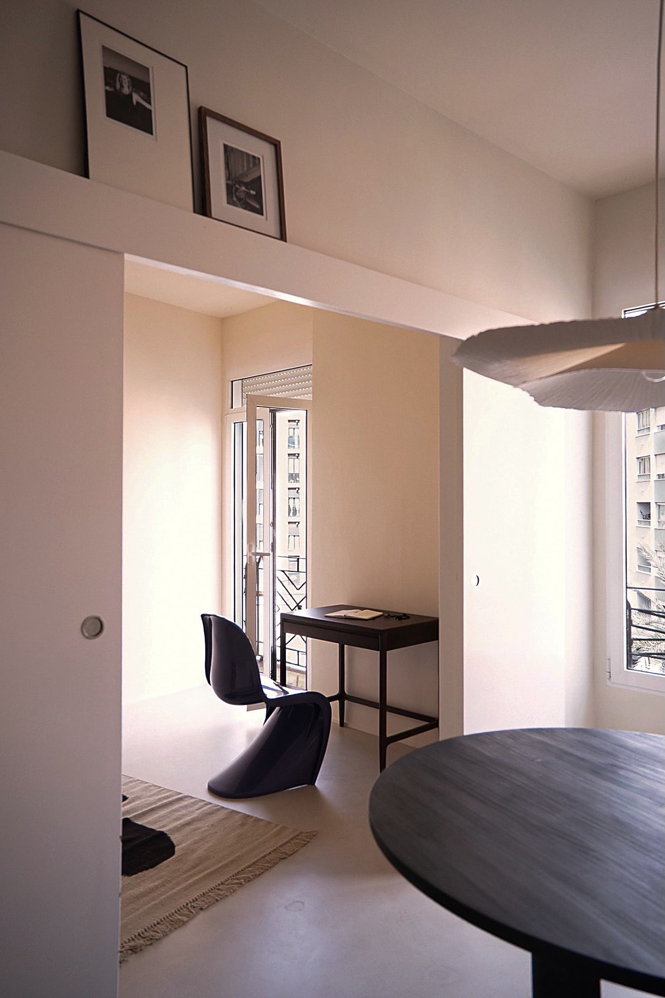 The previous owners had opened it up already to create a living space. I wanted to preserve at least the trace of the original plan. Plus, the corridor created a natural route and clear focal points. We kept it all intact.